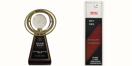 以及京东电商平台“最受企业客户欢迎商用品牌”奖(右)
