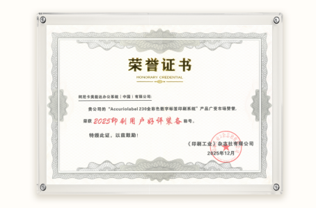 在工业数字印刷领域,柯尼卡美能达亦表现亮眼。柯尼卡美能达Accurio品牌旗下数字标签印刷系统AccurioLabel 230,凭借在生产效率、操作便捷性及介质兼容性等方面的优秀表现,荣获《印刷工业》杂志“2025印刷用户好评装备”称号。