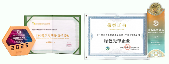 此外,凭借在绿色低碳领域的持续创新与务实行动,柯尼卡美能达从超过5,000家环境标志企业中脱颖而出,荣获中环联合(北京)认证中心有限公司授予的“绿色先锋企业”称号。